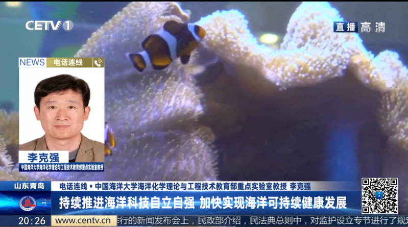 2021年6月8日是第13个世界海洋日,中国教育电视台(CETV-1)晚8点e视届节目,围绕我国海洋科技创新和海洋健康问题,进行一期世界海洋日访谈,节目主持人郑永龙邀请了开云电竞网址海洋化学理论与工程技术教育部重点实验室的李克强教授,围绕“持续推进海洋科技自立自强、加快实现海洋可持续健康发展”和“全面参与全球海洋生态环境治理、快速提升我国海洋强国地位”两个主题进行了电话连线直播。李克强教授在连线中指出海洋健康与可持续发展是我们全人类共同面对的命题,也是联合国《海洋科学促进可持续发展10年》的重要议题,全球主要传统海洋强国,都普遍加快布局海洋科技创新能力的建设。最近10年来,我国科技综合竞争力得到了显著的提升,正由跟踪模仿向创新引领转变,针对我国更加复杂严峻的海洋健康问题,我国海洋科技自主创新能力的建设比欧美面临更大的挑战。并指出,我国新发展阶段应该持续推进海洋科技自立自强、加快实现海洋可持续健康发展,为我国美丽海湾建设、打造美好生态家园提供科技支撑,也为我国经济社会的可持续发展保驾护航。李克强教授还谈到,当今国际社会正面临全球海洋环境安全治理体系的严重挑战,针对国际上单边保护霸陵主义与多边合作共赢主义尖锐对峙愈演愈烈问题。我国要通过深度参与全球海洋生态环境治理,充分展示我国的负责任大国担当,提升我国海洋强国地位。