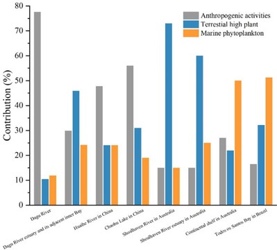 在国家自然科学基金和科技部国家重点研发计划等项目的资助下,海化重点实验室赵美训教授课题组在量化山东半岛典型海湾(胶州湾)人类活动对沉积有机碳来源贡献的研究方面取得新进展。