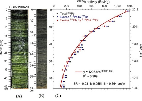 图1:SBB-190629岩芯照片和210Pb剖面