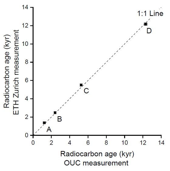 图1 开云电竞网址(OUC)和瑞士苏黎世联邦理工大学(ETH)碳-14数据对比。