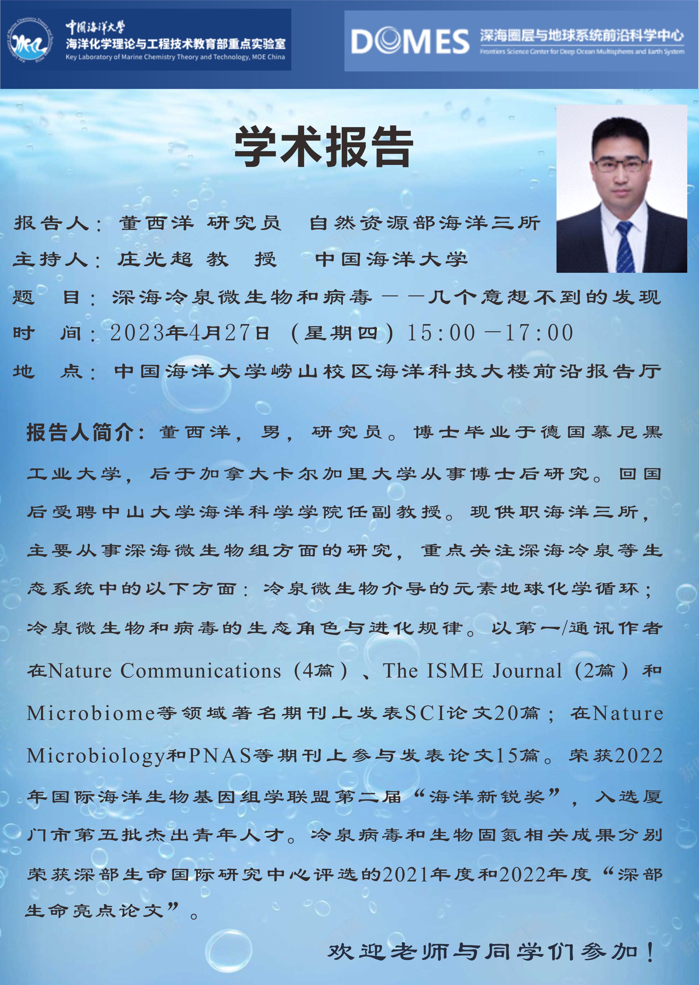 4月27日董西洋研究员报告:深海冷泉微生物和病毒——几个意想不到的发现