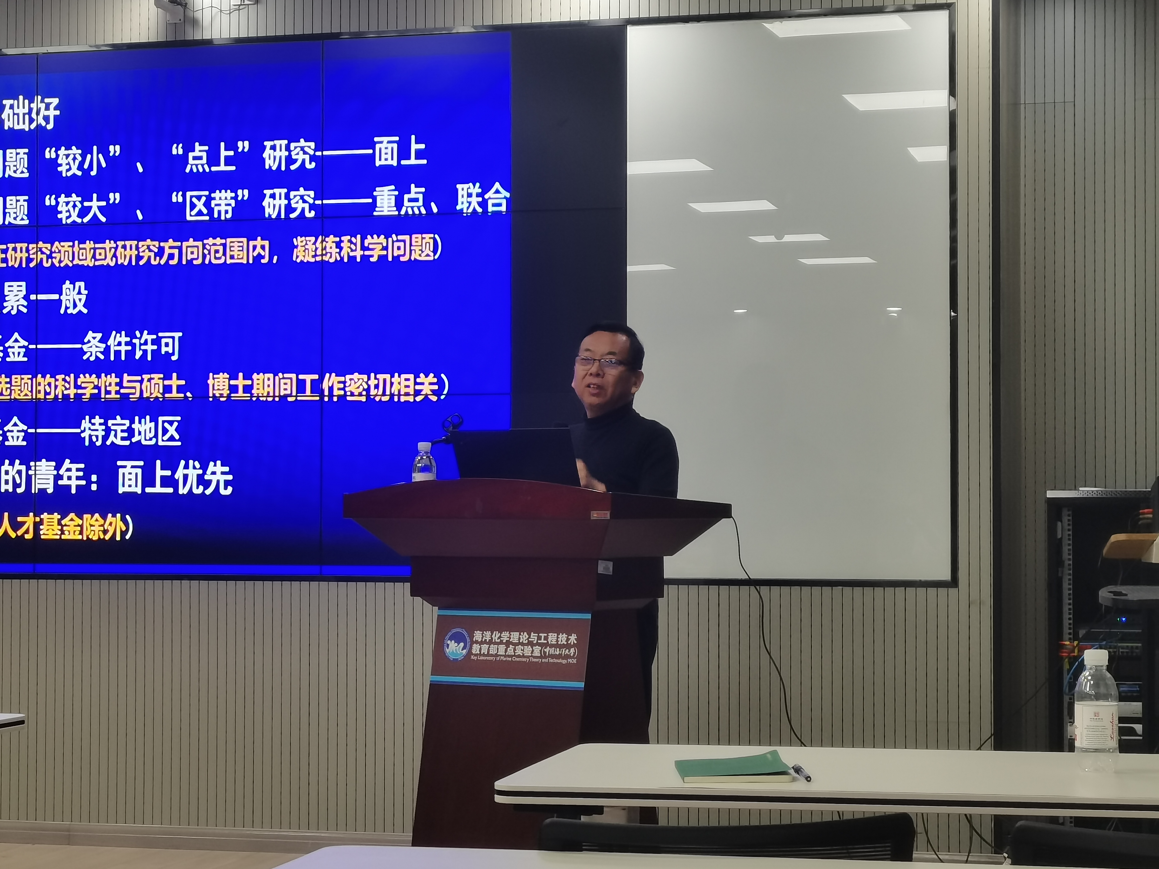 为进一步提升2024年度国家自然科学基金项目申报质量、提高资助率,12月27日下午,科技处联合海洋化学理论与工程技术教育部重点实验室、化学化工学院在化学化工学院三楼多功能厅举办2024年度国家自然科学基金申报讲座。讲座邀请了来自中国科学院海洋研究所的宋金明研究员、中国科学院青岛生物能源与过程研究所崔光磊研究员和开云电竞网址物理海洋教育部重点实验室陈显尧教授担任主讲人,会议由海洋化学理论与工程技术教育部重点实验室副主任姚庆祯主持,科技处、化学化工学院、海洋化学理论与工程技术教育部重点实验室相关领导以及相关院系共五十余名余名教师参加此次讲座。