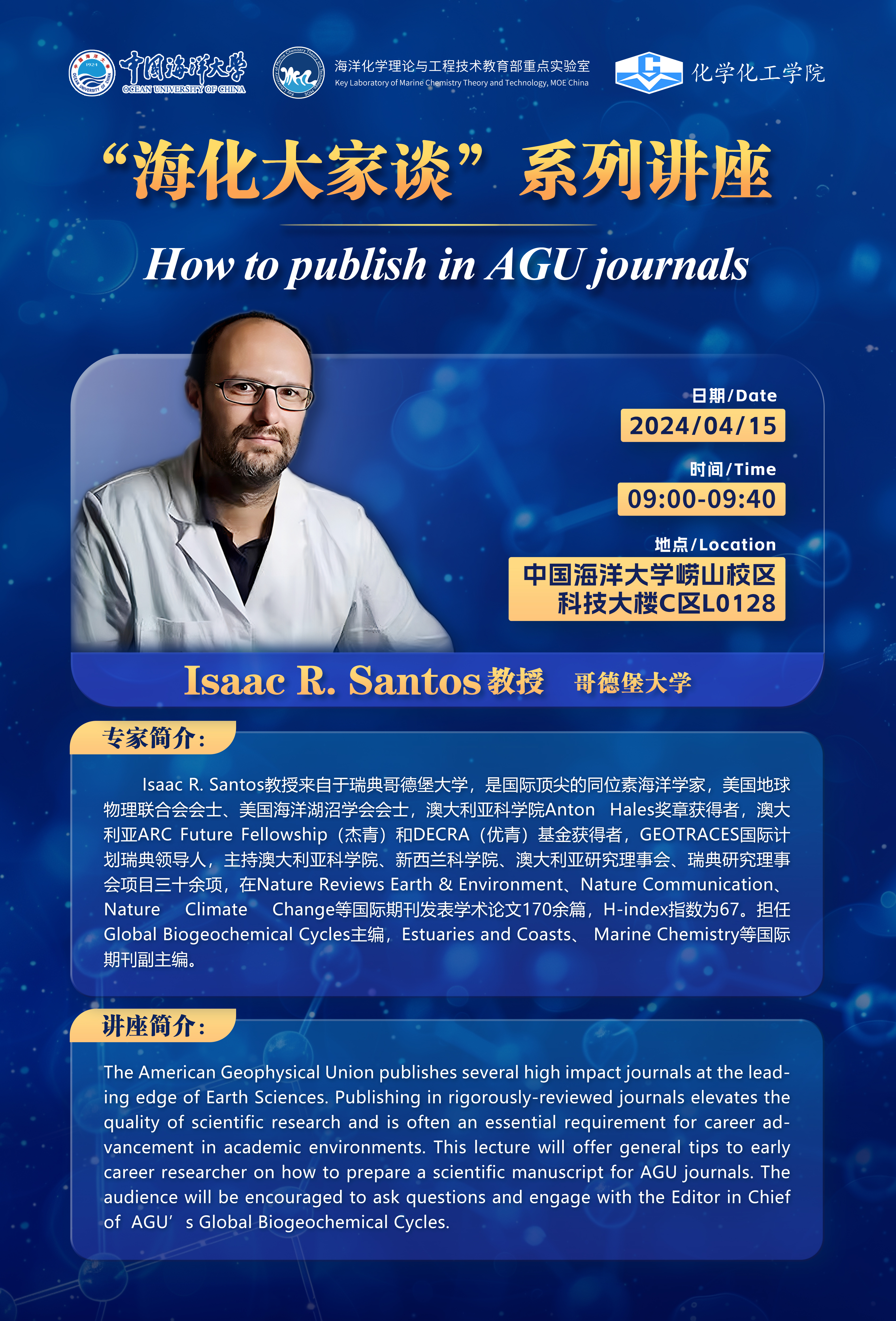 【海化大家谈】4月15日 Isaac R. Santos 教授报告