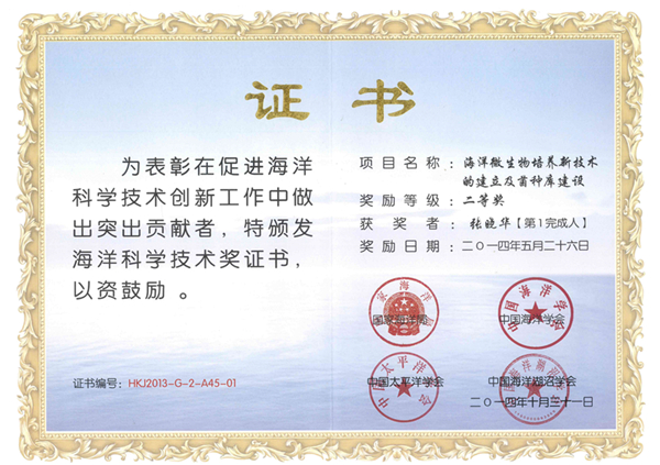 “海洋微生物培养新技术的建立及菌种库建设”获2013年海洋科学技术二等奖