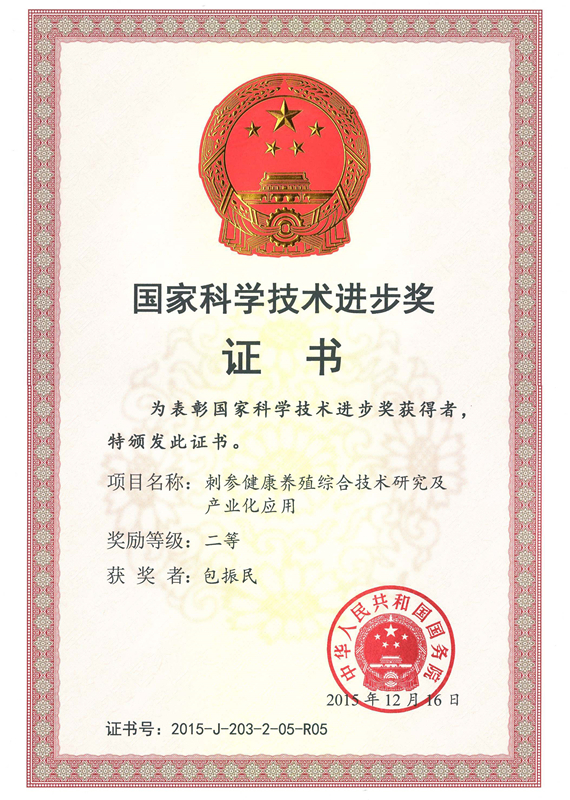 2016年1月8日,中共中央、国务院在北京人民大会堂隆重举行2015年度国家科学技术奖励大会。由海洋生物遗传学与育种教育部重点实验室包振民教授参与完成的成果“刺参健康养殖综合技术研究及产业化”荣获国家科学技术进步二等奖。包振民教授主要负责刺参分子育种技术的开发,在分子标记高通量筛查技术,家系亲缘关系分析,高精度遗传图谱构建等方面做出重大贡献。