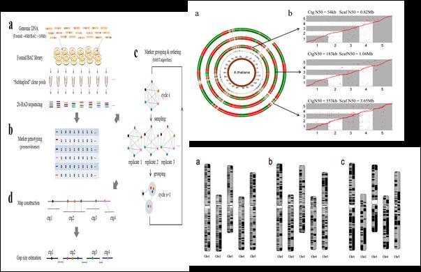 RadMap技术原理(图左)及拟南芥全基因组精细图谱绘制(图右) GENETICS杂志主页重点推荐论文 Dou J#, Dou H#,Mu C, Zhang L, Zhou Z, Chang Y, Wang J, Li T, Li Y, Hu X, Wang S* & Bao Z*.(2017) Whole-genome restriction mapping by “subhaploid”-based RAD sequencing:an efficient and flexible approach for physical mapping and genome scaffolding.Genetics. 206: 1237-1250. 论文链接:http://www.genetics.org/content/early/2017/05/01/genetics.117.200303