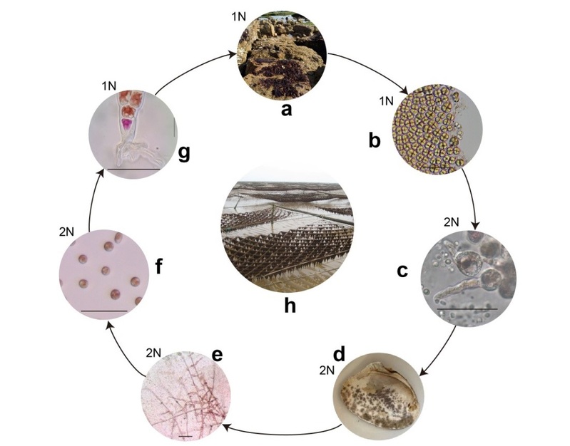 Fig. 1. The life cycle of P. yezoensis showing the alternation of heteromorphic generations inhabiting distinctive niches.