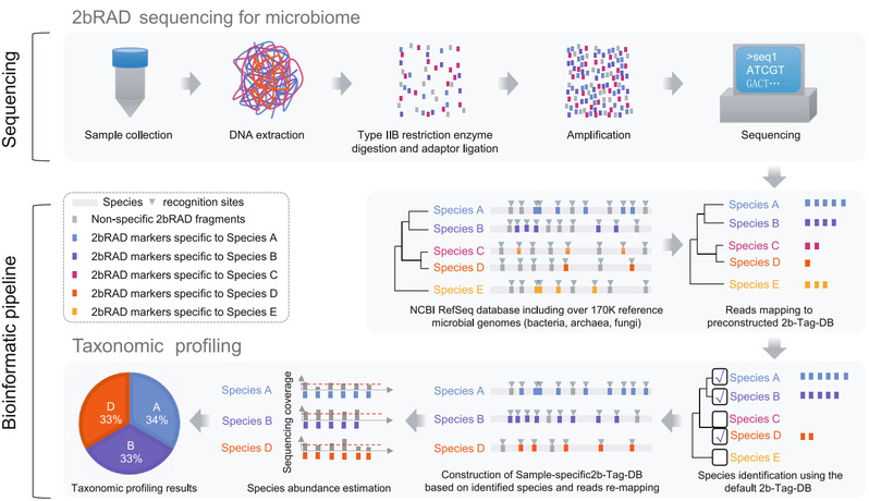 图1. 2bRAD-M技术原理及分析流程