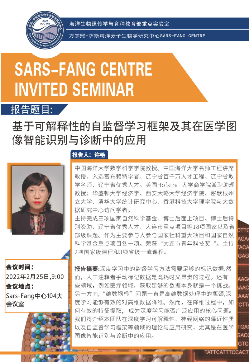 特邀学术报告-数学科学学院许艳教授和海洋生物多样性与进化研究所田苗教授