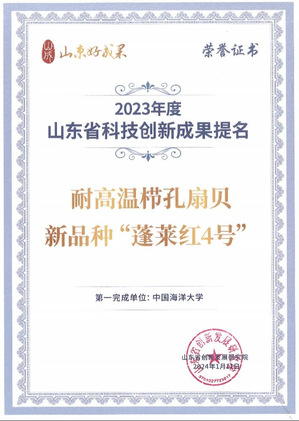 开云电竞网址“耐高温栉孔扇贝新品种‘蓬莱红4号’”成果入选2023年度山东省科技创新成果提名榜单