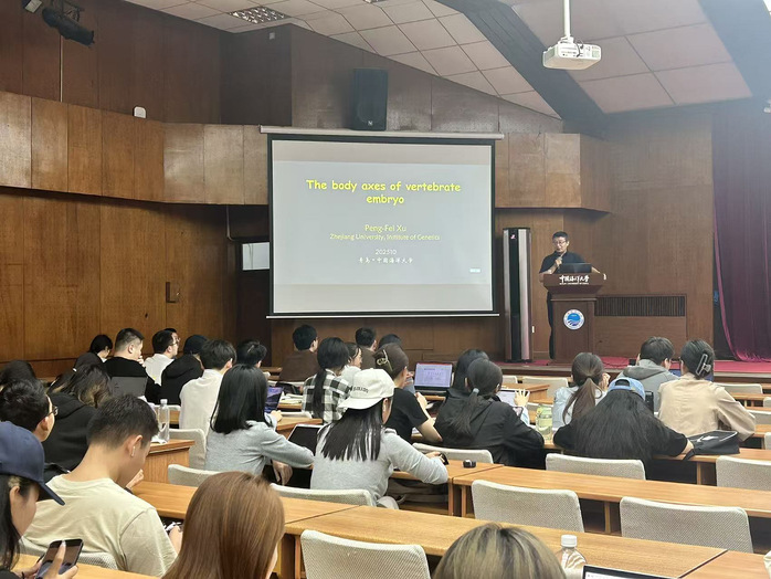2025年10月10日下午,海洋生物遗传学与育种教育部重点实验室邀请了浙江大学徐鹏飞研究员作题为“胚胎发育中的体轴建立”的学术报告,来自水产学院和海洋生命学院的老师和学生现场聆听了学术报告。