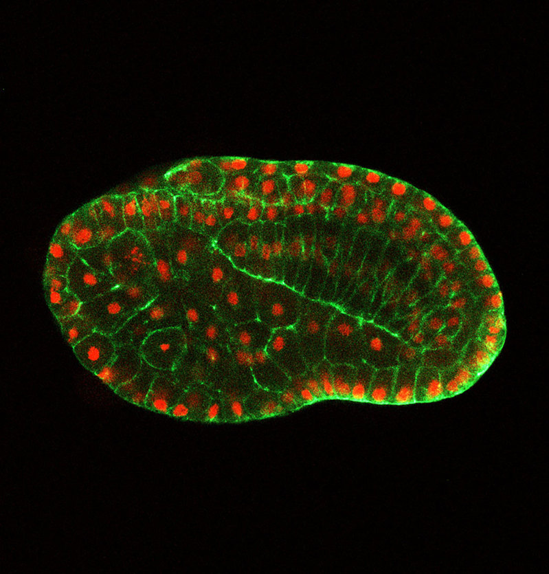QL, YG, BD: Embryonic tail bending is an evolutionarily-conserved morphogenetic process in early mbryogenesis for most invertebrates and vertebrates. This large-scale morphogenetic event has been long known about, but the underlyingmechanisms have not been investigated. Apossible reason is tissue-bending and tissue-folding at the embryo scale is difficult to study because of the anatomical complexity of many model animals. Before our publication, it was thought that embryonic tail bending is a passive process achieved by the physical barrier of the chorion that confines the tail, bending it during elongation.