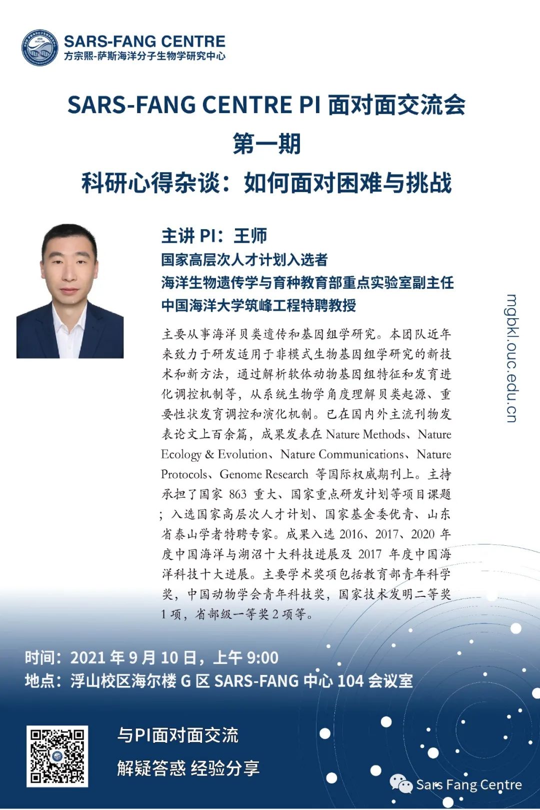 开云电竞网址方宗熙萨斯海洋分子生物学研究中心Sars-Fang Centre将邀请PI做系列分享会, 将以轻松活泼的形式分享科研背后的故事、交流科研工作的经验与心得,请老师和同学们参加,交流会详情: