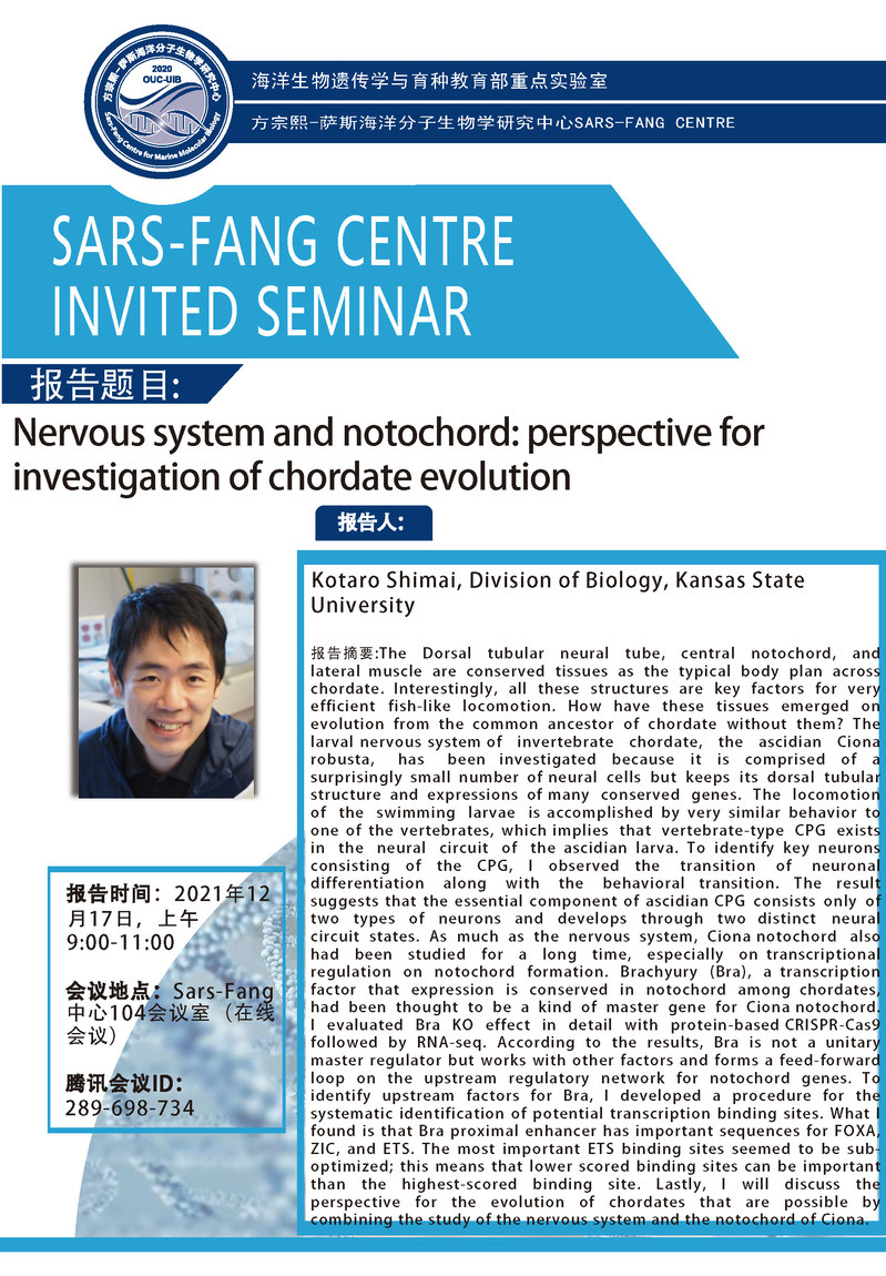 Kotaro Shimai:Nervous system and notochord: perspective for investigation of chordate evolution