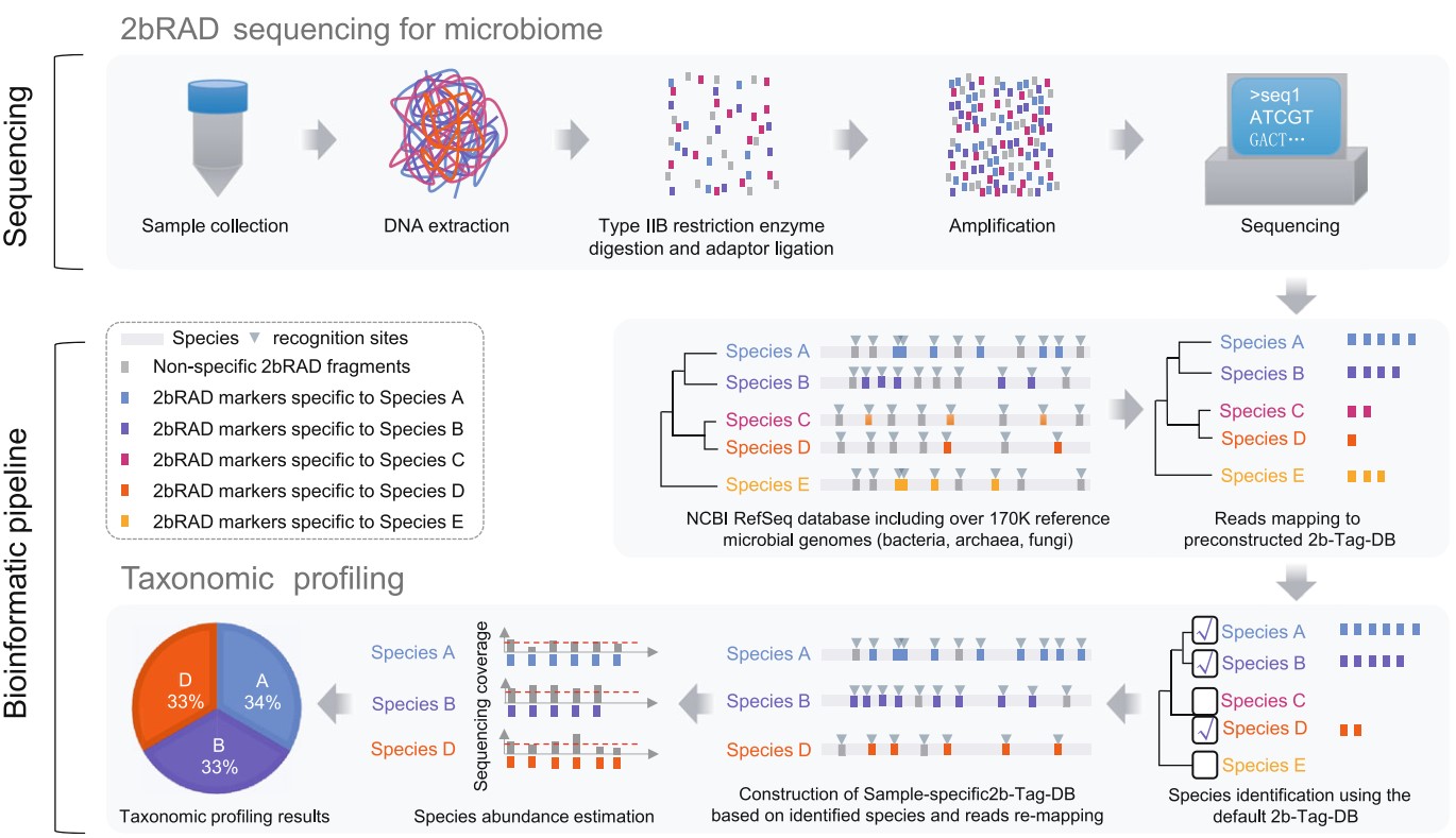 2022年1月26日,开云电竞网址方宗熙-萨斯海洋分子生物学研究中心王师教授与中科院青岛生物能源与过程所徐健研究员团队合作,在国际基因组学领域权威期刊Genome Biology上发表了最新研究成果 “Species-resolved sequencing of low-biomass or degraded microbiomes using 2bRAD-M” (种阶元解析精度的微量或降解微生物宏基因组测序技术—2bRAD-M)。