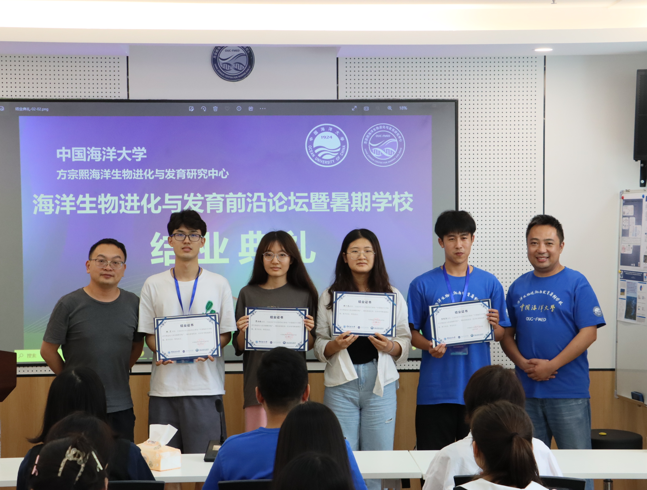结课仪式上,董波教授对本届暑期学校进行了总结,并与陈凯教授、王玮教授、于海燕副教授、杨秀霞副教授和杨立昆博士一同为暑期学校的学员颁发结业证书。