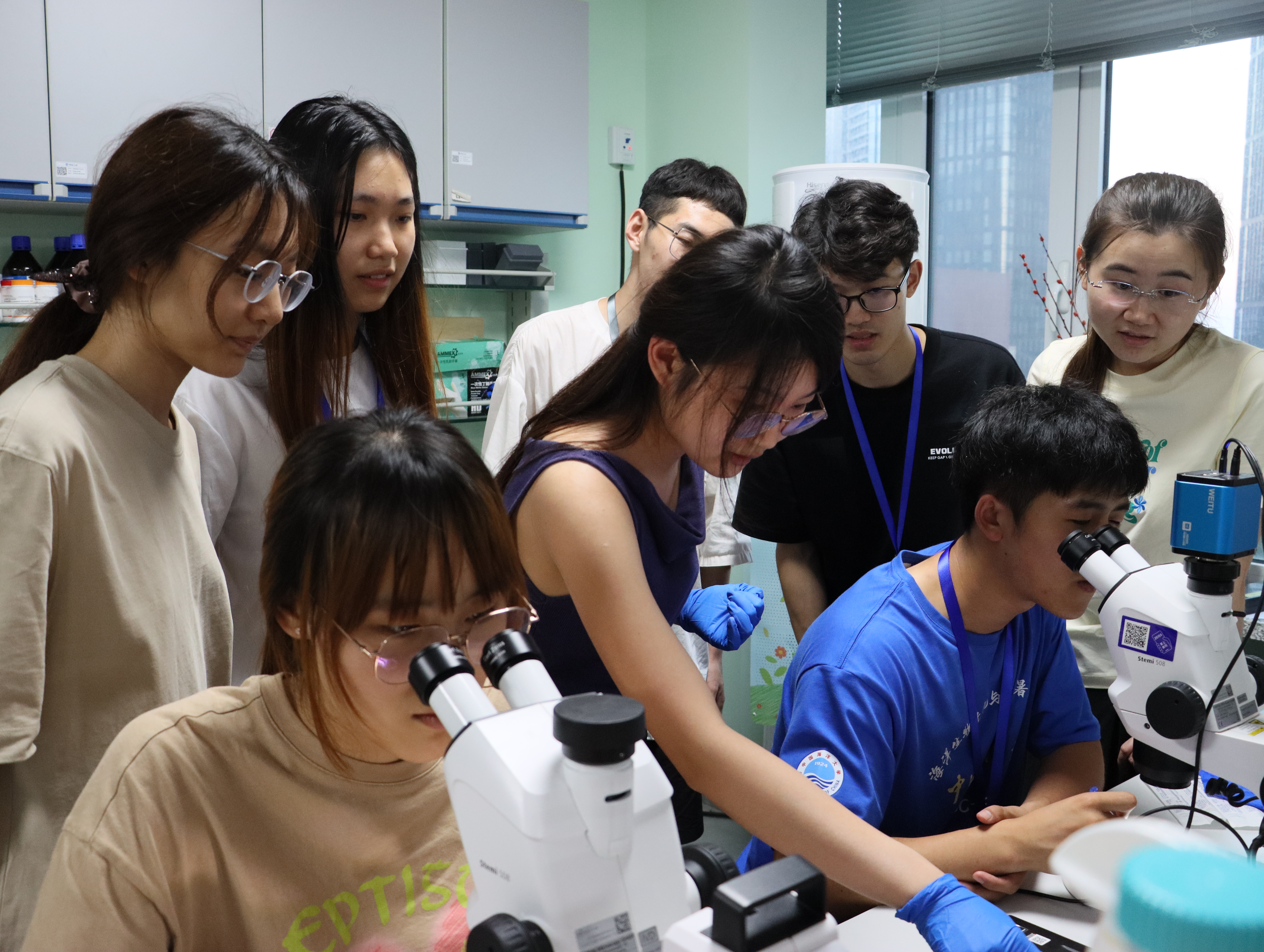 为进一步将理论学习和实验实践有效结合,此次暑期学校特别安排分组实验,包括海鞘早期胚胎发育及成体组织观察、胚胎组织解离、单细胞悬液制备和质控、CRISPR-cas9基因编辑技术应用等。