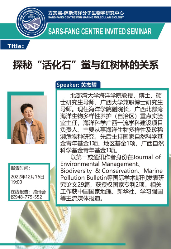 Prof. Jieyao Guan from University of Beibu Gulf:Explore the relationship between "living fossil" horseshoe crabs and mangrove forests
