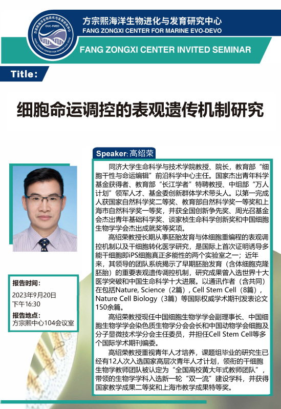 Prof. Shaorong Gao from Tongji University:Epigenetic mechanisms of cell fate regulation