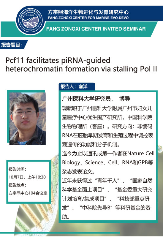 Researcher Yang Yu from Institute of Biophysics, Chinese Academy of Sciences: Pcf11 facilitates piRNA-guided heterochromatin formation via stalling Pol II