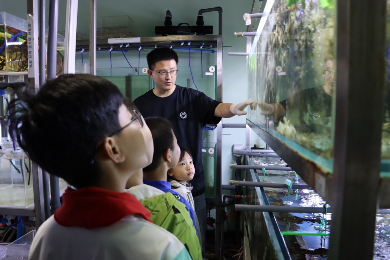 30余名小学生近距离体验了海洋生物的科学魅力,并与科研人员一起通过科学实验“探秘海洋生物”,进行了生动有趣的海洋生物科普知识问答,开启了“奇妙海洋生物探秘之旅”。