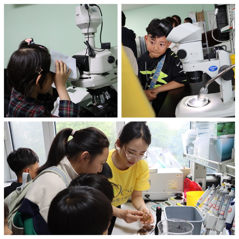 活动的高潮部分是海洋科学实验展示。在科研人员的指导下,孩子们参观了形态发生与进化实验室、贝类遗传与演化研究室以及纤毛与器官发育实验室,观摩了海鞘早期胚胎发育观察、幼虫行为学实验、贝类组织解剖、早期胚胎发育及成体组织形态研究,以及丝盘虫显微切割、注射实验等科研过程。这些前沿的科学实验让孩子们领略了海洋生物科学的独特魅力,也让他们对科学创新有了更深刻的认识。