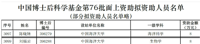 中心刘福云博士与陈晓妹博士获2024年度中国博士后科学基金资助