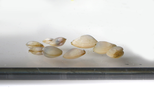 侏儒蛤(Mulinia lateralis)自然分布于北美大西洋沿岸和加勒比海域,是隶属帘蛤目蛤蜊科的小型埋栖性双壳贝类,寿命约2年。侏儒蛤具有成为模式贝类的诸多优点,如体型小(成体约15-20 毫米)、发育快速且早期贝壳透明、性成熟周期短(约2个月)、易人工饲养(不需附着基)等。目前,本课题组已经搭建了标准的侏儒蛤实验室人工繁育体系,每年家系可连续传代5次;已构建了高质量的参考基因组并完成了单倍体精度的基因组组装,获得了全发育时期/成体器官转录组以及幼虫的单细胞转录组,发现侏儒蛤具有软体动物古老核型和基因库代表性。此外,侏儒蛤是最早成功应用转基因技术的双壳贝类。本课题组目前已突破微小卵径显微注射技术,成功实现外源基因导入与细胞示踪,利用RNAi技术初步建立单基因敲降实验体系,并利用CRISPR/Cas9技术初步建立单基因敲除实验体系,为解码感兴趣的基因的功能奠定了基础。
