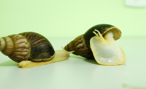 非洲大蜗牛隶属腹足纲,生长快速,平均寿命3-5年,可通过休眠应对环境压力。作为最大的陆生软体动物,其壳长可达20厘米。A. fulica为雌雄同体,异体受精,5-6月龄时性成熟,每次产卵100-200个,一年内可产卵3-5次,8-15天可孵出幼蜗,是研究软体动物无限生长、陆生化适应等科学问题的理想动物模型。本课题组已实现非洲大蜗牛的实验室养殖与人工繁育,每年可繁殖3~4次;完成了主要成体组织器官的转录组构建,建立了幼体细胞和成体组织细胞的原代培养体系,为相关生物学问题的解析奠定了基础。