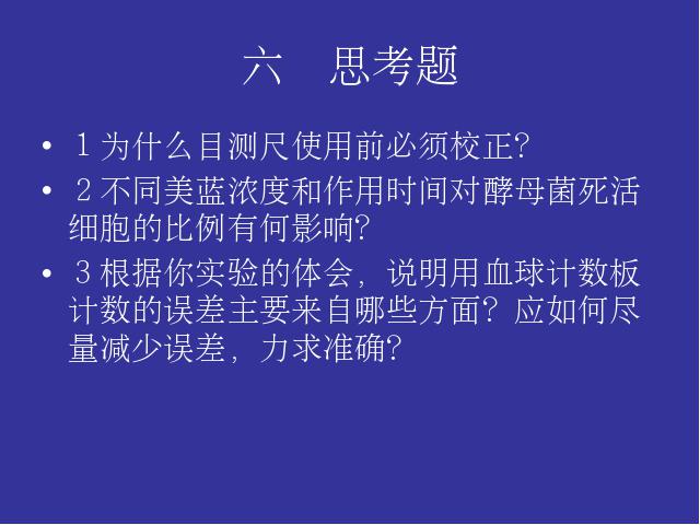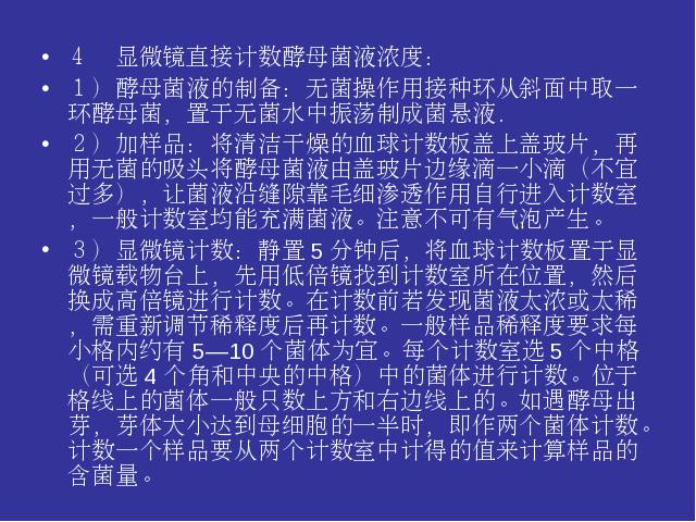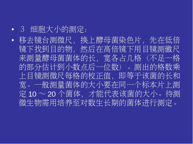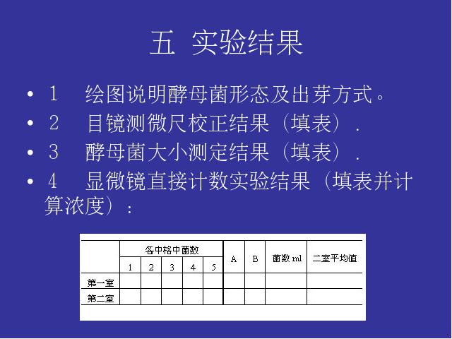 实验四酵母菌的形态观察、死活细胞鉴别、微生物测量技术、显微镜直接计数法
