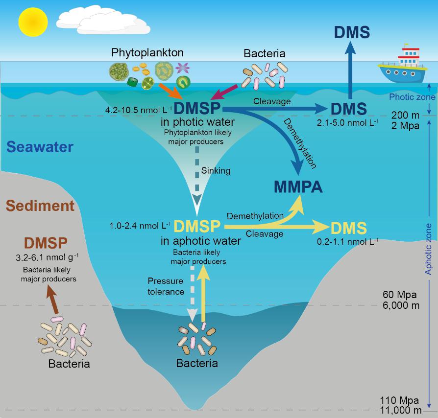 图1马里亚纳海沟水体和沉积物中的DMSP循环