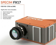 SPECIM FX17高光谱成像系统将可见光近红外光谱与高分辨率成像相结合,采用推扫式(pushbroom)成像技术对运动的样品或在运动中对静止的样品进行逐线全波段光谱采集并同步生成图像,获取样品化学成分的量化数据以及空间分布等详细信息,图像中每一象素都记录了其对应样品点的化学组成、质量、颜色等信息的光谱特征,用于对样品进行定性、定量分析。