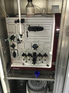 2021年7月份我院新进两台蛋白纯化色谱系统。该仪器由瑞典GE公司生产,型号为AKTA Pure 25 L1/M1,价值都是620139元。设备系统配备全自动微量精确柱塞泵,系统泵流速0.001-25ml/min,装柱可以双泵模式运行,达到0.1-50ml/min;系统泵具备恒压调速功能,自动根据压力调节流速输出,使压力保持稳定;电导检测器检测范围0.01mS/cm-999.9mS/cm。此台仪器含多波长氙灯紫外检测器,可检测190-700nm之间任意三个波长的样品。