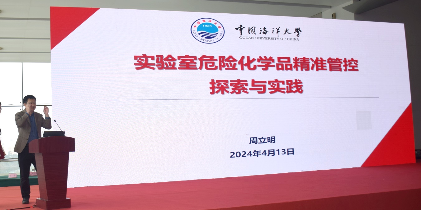 学校国有资产与实验室管理处周立明副处长做《信息化背景下实验室危化品精准管控探索与实践》报告