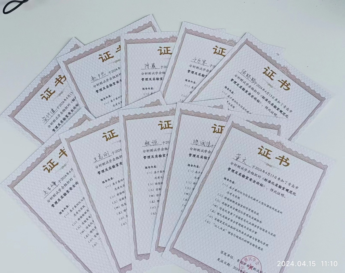实验中心教职工参加《标准化实验室规范化管理及实验室安全论坛》培训证书