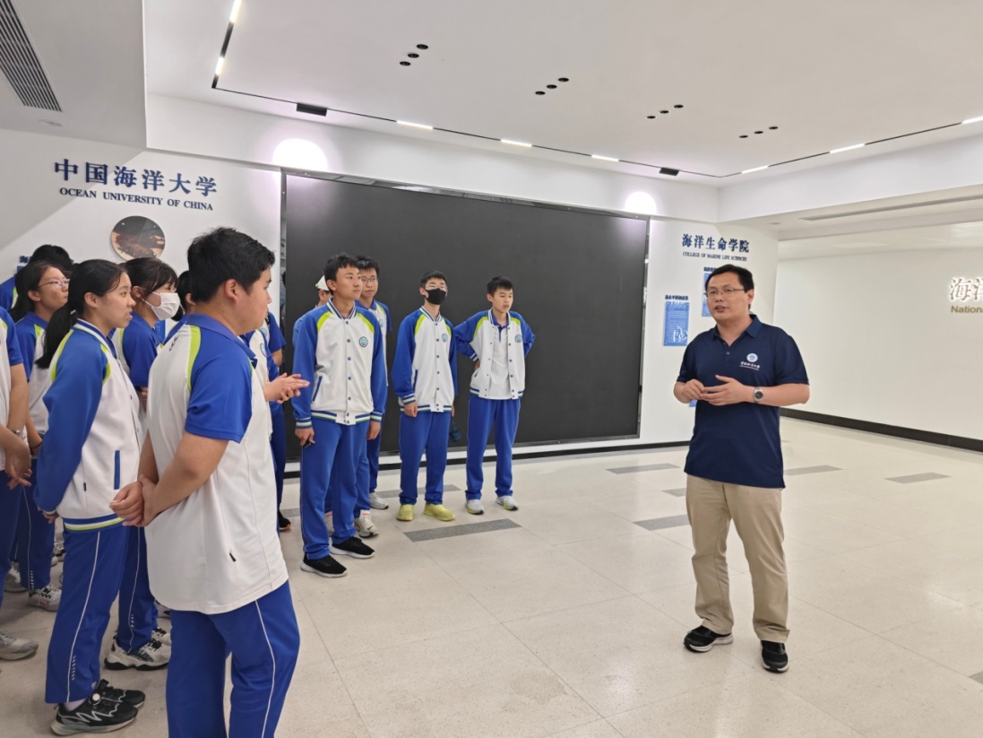 本站讯  72日,青岛第三十九中学(开云电竞网址附属中学)的老师和学生共40余人走进海洋生命科学国家级实验教学示范中心(开云电竞网址)(以下简称实验中心),进行参观学习和交流活动。实验中心常务副主任刘晓收、党支部书记王祥红、高级实验师于乐军等接待并介绍了实验中心基本情况。