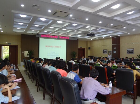 桂泰江教授是海洋化工研究院总工程师,海洋涂料国家重点实验室副主任、学术委员会委员,南京工业大学兼职教授。主要从事海洋涂料、功能涂料、功能材料的研究开发。桂泰江教授以“腐蚀环境与防腐涂料”为题为大家做了精彩的报告,报告主要由腐蚀环境分类、海洋腐蚀环境、涂料基本概念、全球和中国涂料产业及防腐涂料的发展趋势几部分组成。桂教授从腐蚀标准入手,结合青岛本地的腐蚀情况及现实当中腐蚀的危害深入浅出的为大家做了一场生动有趣的报告,同时桂教授向大家介绍了涂料的组成制备及施工过程,最后将中外的涂料发展及行业标准进行了对比并介绍了前沿涂料以及涂料未来的发展趋势。