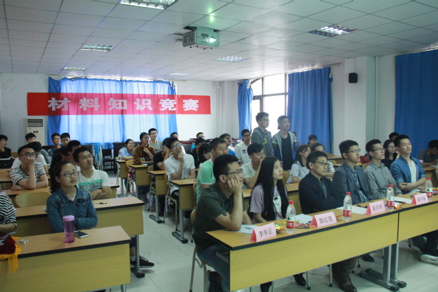 本站讯:5月27日晚,材料学院在材料楼513举办了“材料知识竞赛”,出席本次活动的嘉宾有2016级高分子材料与工程班班主任崔中雨老师、2017级材料科学与工程班班主任陈同来老师、辅导员张蔚圣老师、辅导员郭纪斐老师以及竞赛题库设计者李华正和赵广志同学,本次竞赛共有16支参赛队伍。