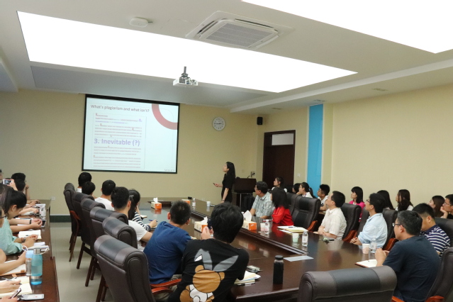 本站讯 6月19日下午, Wiley 出版社材料期刊编辑袁吉培博士受邀在材料科学与工程学院211会议室做了题为《Wiley材料科学期刊论文发表—如何提高稿件的接受率》的报告。此次报告由陈守刚教授主持,材料科学与工程学院教师和学生参加了此次报告会。