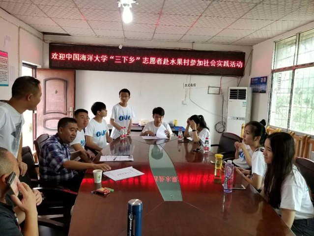 7月11日上午,在水果村村支部委员会办公室内,团队成员与中国工商银行扶贫工作处第一书记、水果村村主任、水果村村支部书记进行了访问和交流,他们对团队提出的问题耐心解答。队员们了解了水果村目前的经济现状和扶贫工作进展情况。