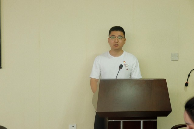 先进党支部代表、2019级硕士研究生党支部书记毛学赞发言。他表示获此此项荣誉感到非常荣幸,在以后党支部的工作中会继续把为同学们服务的热情体现在工作中、落实在行动上、贯彻在日常里。