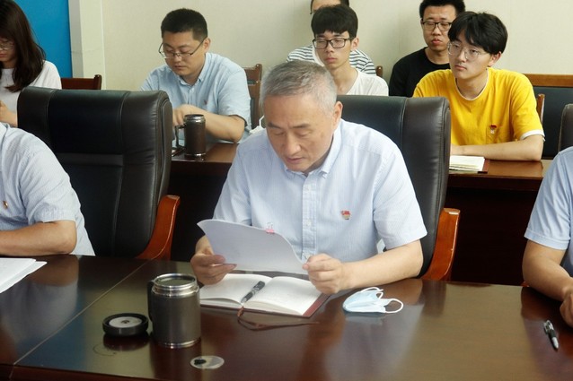 张庆德代表学院党委发言。他首先传达了学校党委常务副书记张静对材料学院获学校“七一”表彰同志们表示的热烈祝贺。之后,带领大家一同学习了张静书记在学校庆祝中国共产党成立100周年暨表彰大会上的讲话精神。最后,张庆德表示各位党员同志一同收听收看中国共产党成立100周年大会后,要认真学习习近平总书记大会上的重要讲话,勉励党员同志们要立足岗位、扎实工作,发挥好党员的先锋模范带头作用,积极为人民服务。