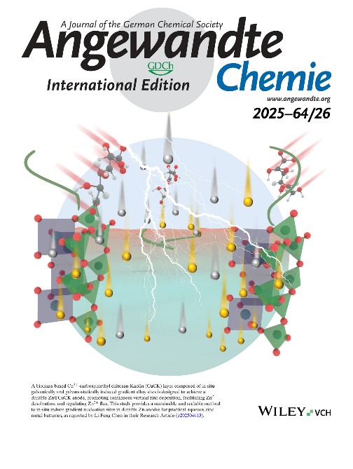 [22] X. Liu+, J.-W. Qian+, J. Chen+, Y.-K. Xu, W.-Y. Wang, W.-X. Dong, W. Hu, G.-R. Cai, J. Lu*, S.-H. Yu*, L.-F. Chen*. “A Sustainable and Scalable Approach for In-Situ Induction of Gradient Nucleation Sites in Biomass-Derived Interface Layers for Ultra-Stable Aqueous Zinc Metal Batteries” Angewandte Chemie, 64(26), e202504613, 2025. (Frontispiece)