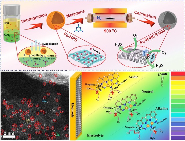 图1 铁基原子级催化材料的制备流程、微观形貌及活性物种识别示意图