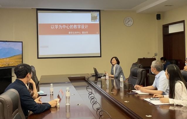 本站讯 2022年5月26日,教学支持中心、教务处、材料科学与工程学院共同举办教师教学发展活动,教学支持中心副主任姜永玲以“以学为中心的教学设计”作报告。材料科学与工程学院院长王昕、副院长张玥,高等教育研究与评估中心副主任何培英参加活动。