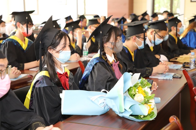 伴随着热烈的掌声,王昕院长发表讲话。首先,他对2022届毕业生们顺利完成学业表示热烈祝贺,对学校实行校园封闭管理期间,全校师生坚守各自岗位、共克时艰的优异表现表示肯定,之后,他讲述了三则意义深刻的故事,告诫毕业生们要不忘“明德尚学,知行合一”的院训,立鸿鹄志,怀家国情,做奋斗者,永远保留校园美好的记忆和积极进取的精神,在新征途中奋勇争先、开创佳绩。