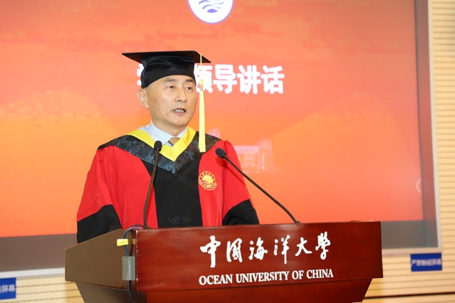 典礼最后,大家共同聆听校党委书记田辉、校长于志刚对广大毕业生的谆谆教诲和殷殷祝福。田辉希望每位海大学子在人生新的征程上,始终牢记“六实”,即对党忠实、为人诚实、学识扎实、干事踏实、作风朴实、进取求实,用实际行动为中华民族伟大复兴谱写绚丽篇章。于志刚从坚持终生学习、保持独立思考、持续艰苦奋斗三个方面对毕业生们提出了殷切希望,呼吁海大人在充满机遇与挑战的新时代下,为中国更加美好的未来贡献海之子的力量和智慧。