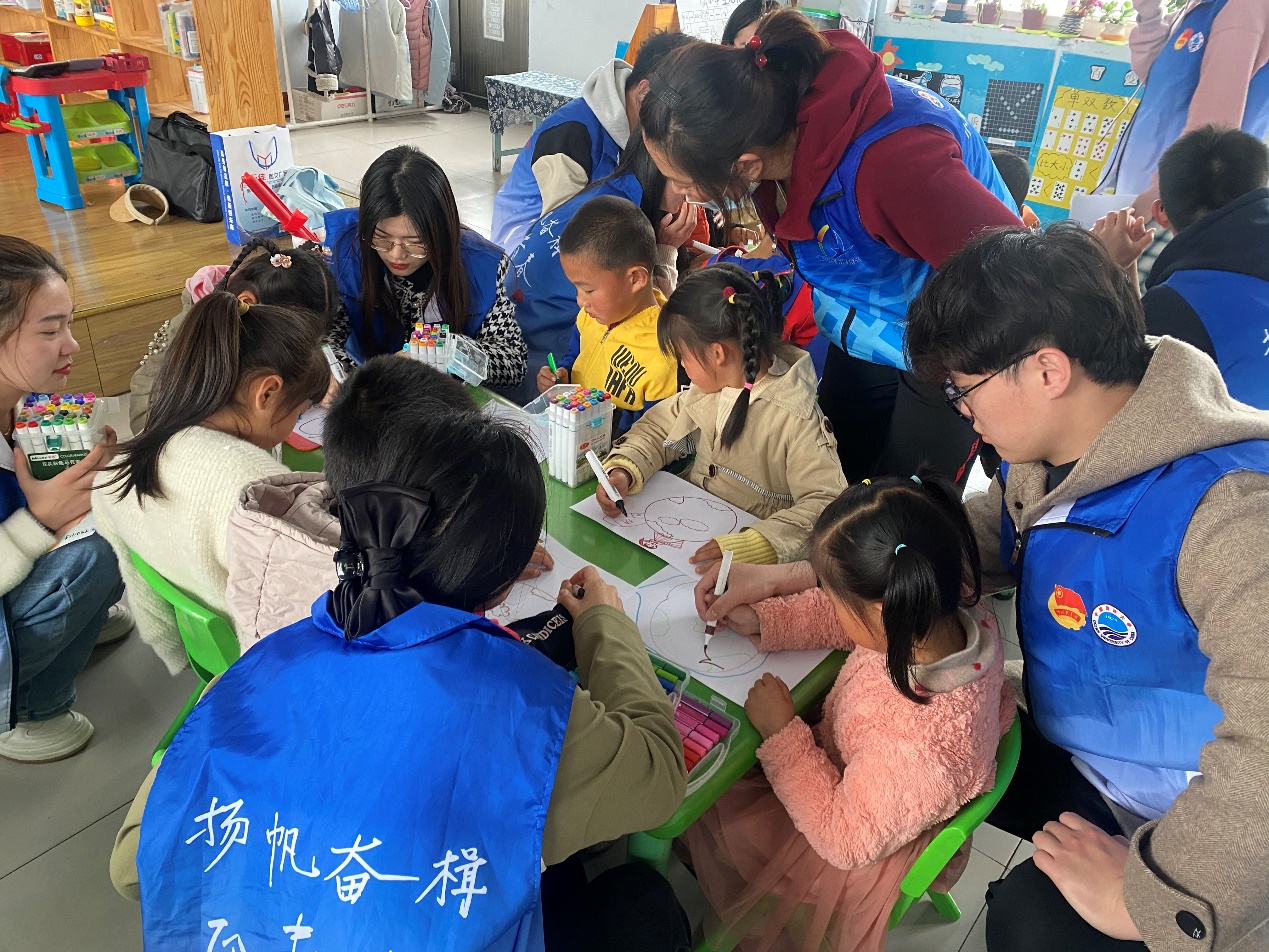 2022级硕士研究生第一团支部书记钱一卉组织世界地球日知识有奖竞答环节,小朋友们踊跃抢答,现场气氛热烈。最后,开展以我手画我心-“珍爱地球”绘画活动。各团支部团员“一对一”和小朋友们交流学习心得,一起创作绘画。一幅幅生动活泼的画作跃然纸上,稚嫩的画笔传达了小朋友们对地球美好环境的热爱。