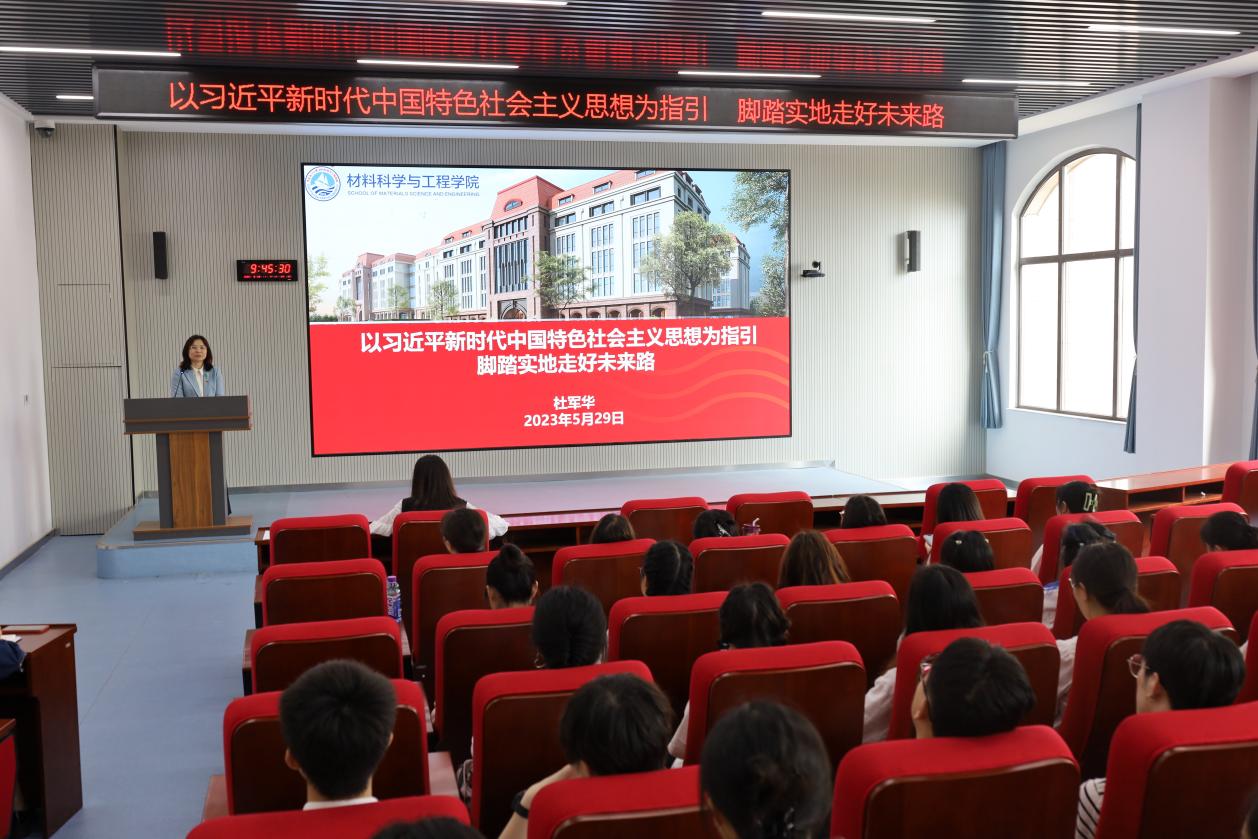 5月29日上午,材料科学与工程学院党委书记杜军华在材料楼102报告厅做了题为“以习近平新时代中国特色社会主义思想为指引,脚踏实地走好未来路”的讲座,为学院2023届全体毕业生上了一堂生动的党课。