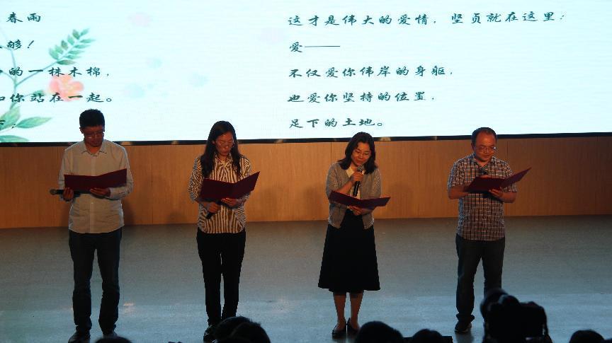 在“展望未来”篇中,老师们通过视频为即将毕业的同学送上毕业祝福,师恩难忘,唯有将所学知识与品行付诸实践,以实际行动回报母校与社会;杜军华老师、学院党委副书记呼双双老师、无机材料系系主任王焕磊、高分子材料专业班主任刘志承四位老师上台用家乡方言朗诵《致橡树》,表达对同学们即将离开母校的不舍以及对同学们未来征程的美好祝愿;辛祖烨带来的歌曲《给未来的自己》,时间不停,过去的岁月已经画上了圆满的句号,未来的我们定要勇往向前,遇见更加优秀的模样;最终,晚会节目在《爱如海大》的歌声中结束,表达了毕业生们对学校的怀恋与感谢。